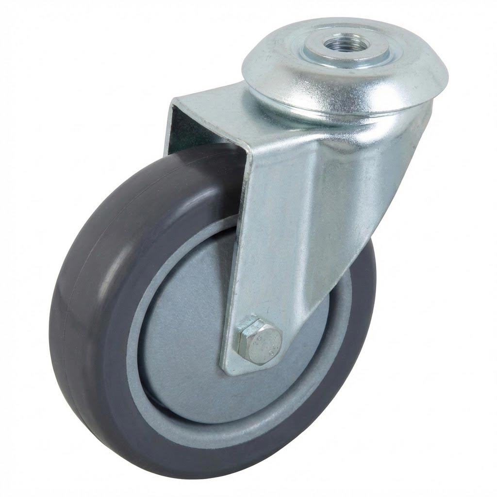 Engineered for demanding industrial and commercial environments, this 100mm swivel bolt hole castor combines anti-static grey polyurethane construction with precision German-style bearing technology. Delivering smooth, quiet operation and exceptional floor protection, it's the professional choice for equipment mobility.