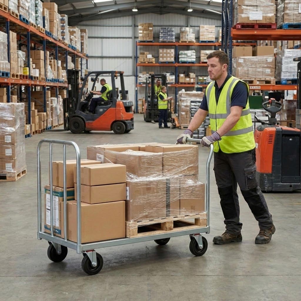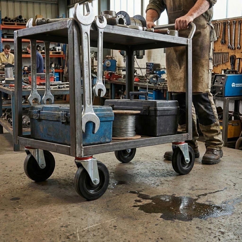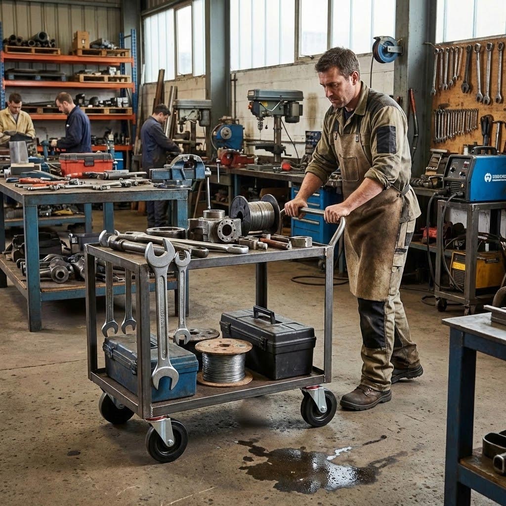 - Industrial Trolleys – Mobile tool carts, material handling equipment, workshop stations